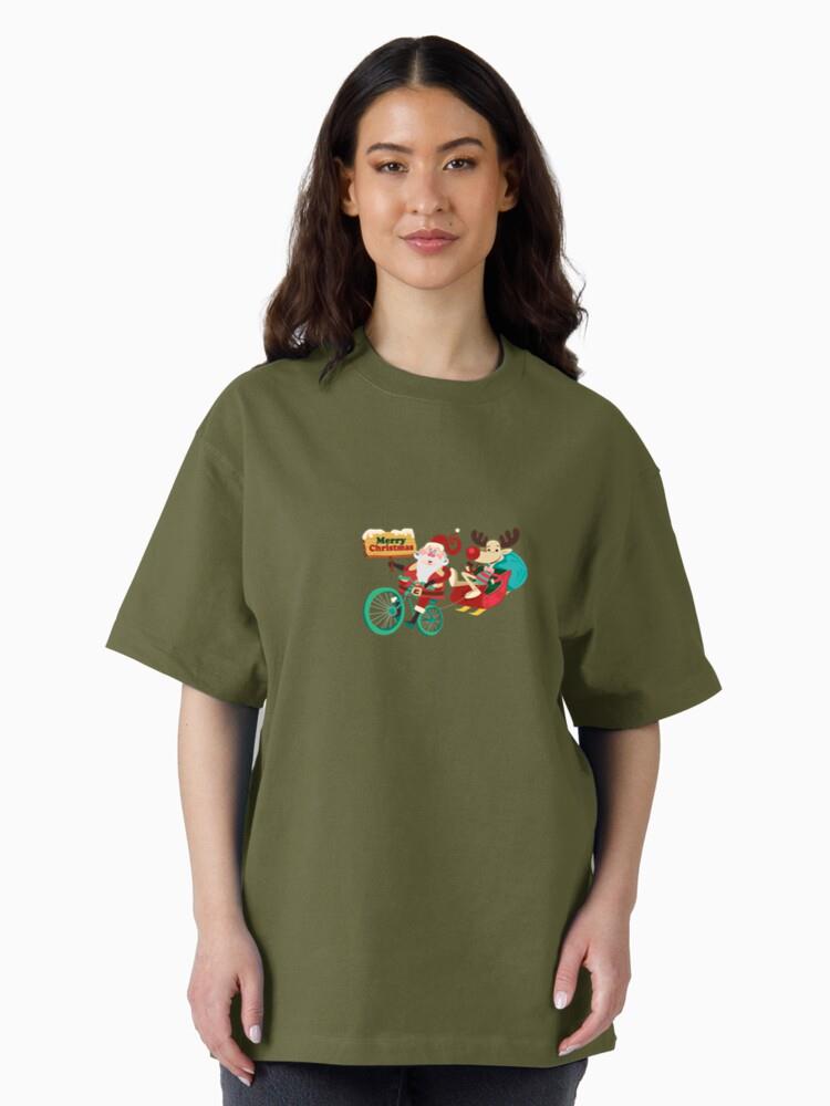• Santa Claus Riding Bicycle Oversized T-Shirt