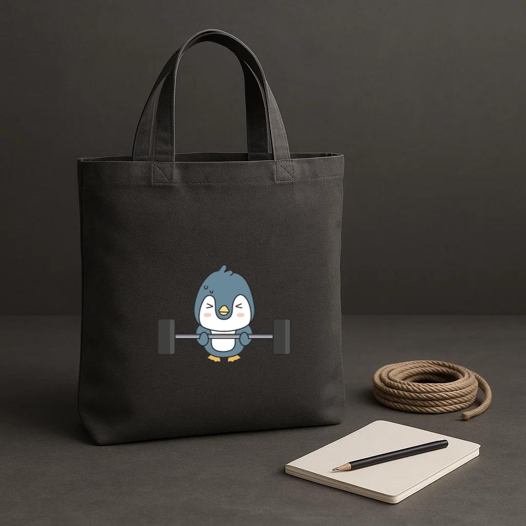 • Cartoon Penguin Lifting A Barbell Tote Canvas Bag