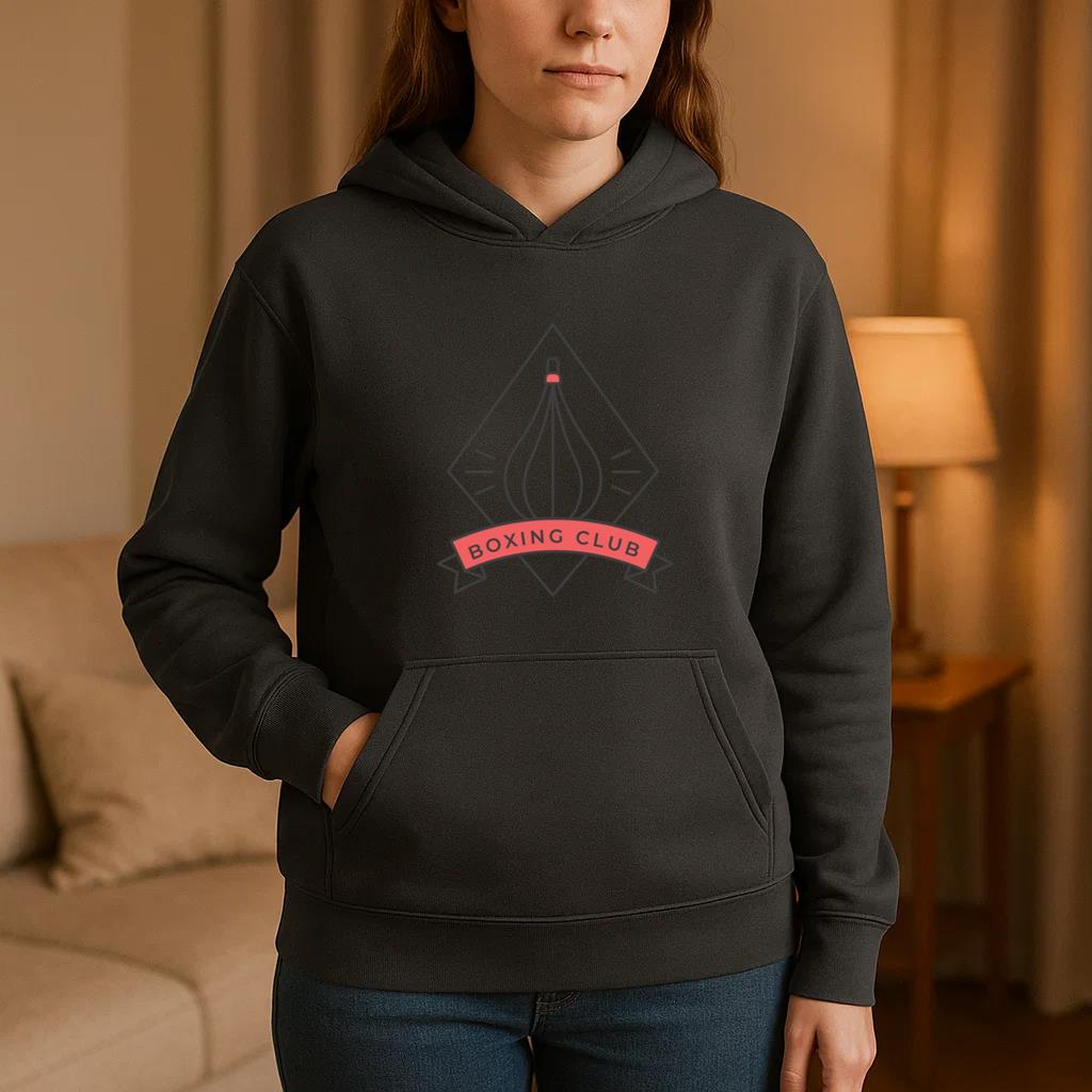 Soft, warm, and made to move with you, this Boxing Club Punchbag Rhomb Colored Badge Sticker Hoodie hoodie is your new everyday essential or go-to gift.